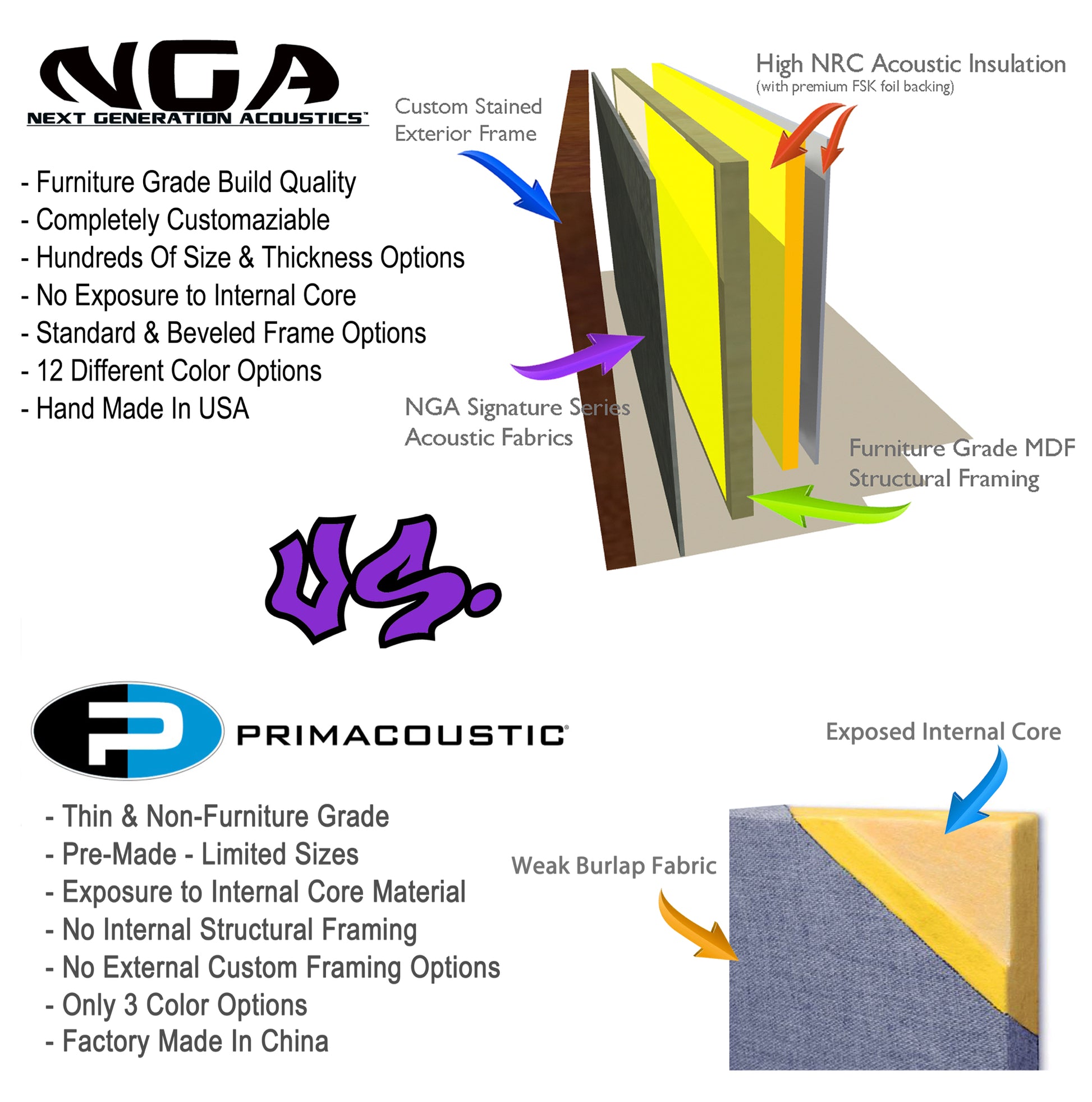 Every panel is custom made, by hand with a significant amount of TLC given to every last detail. If you're looking for classy looks and world-class performing sound treatment, this is the obvious choice.